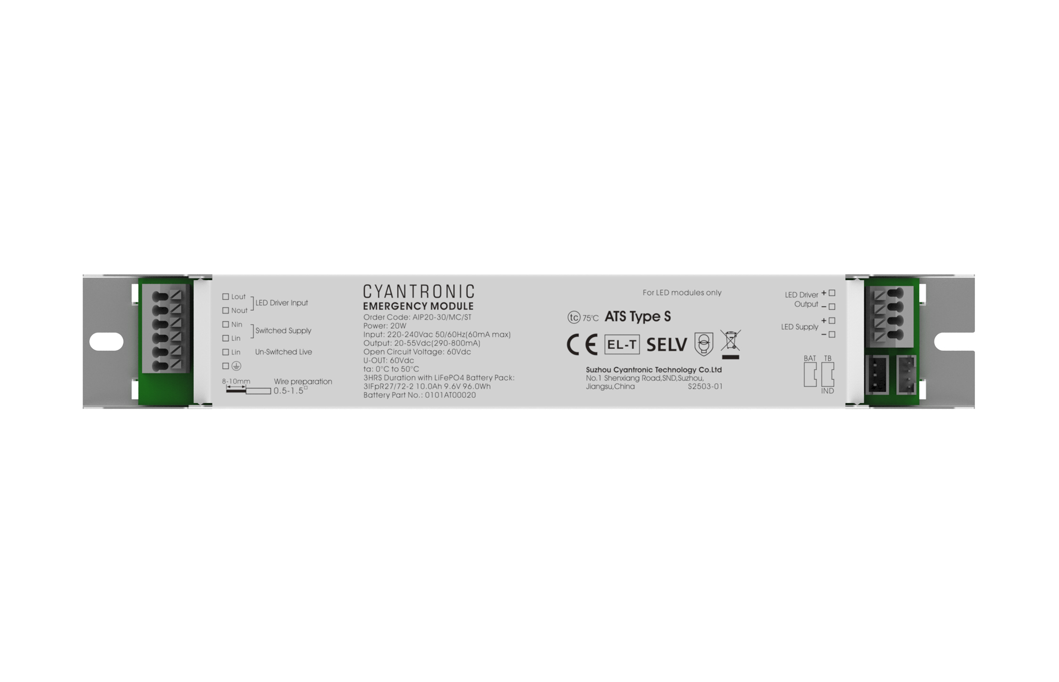 - Wired between LED driver and LED module via terminals