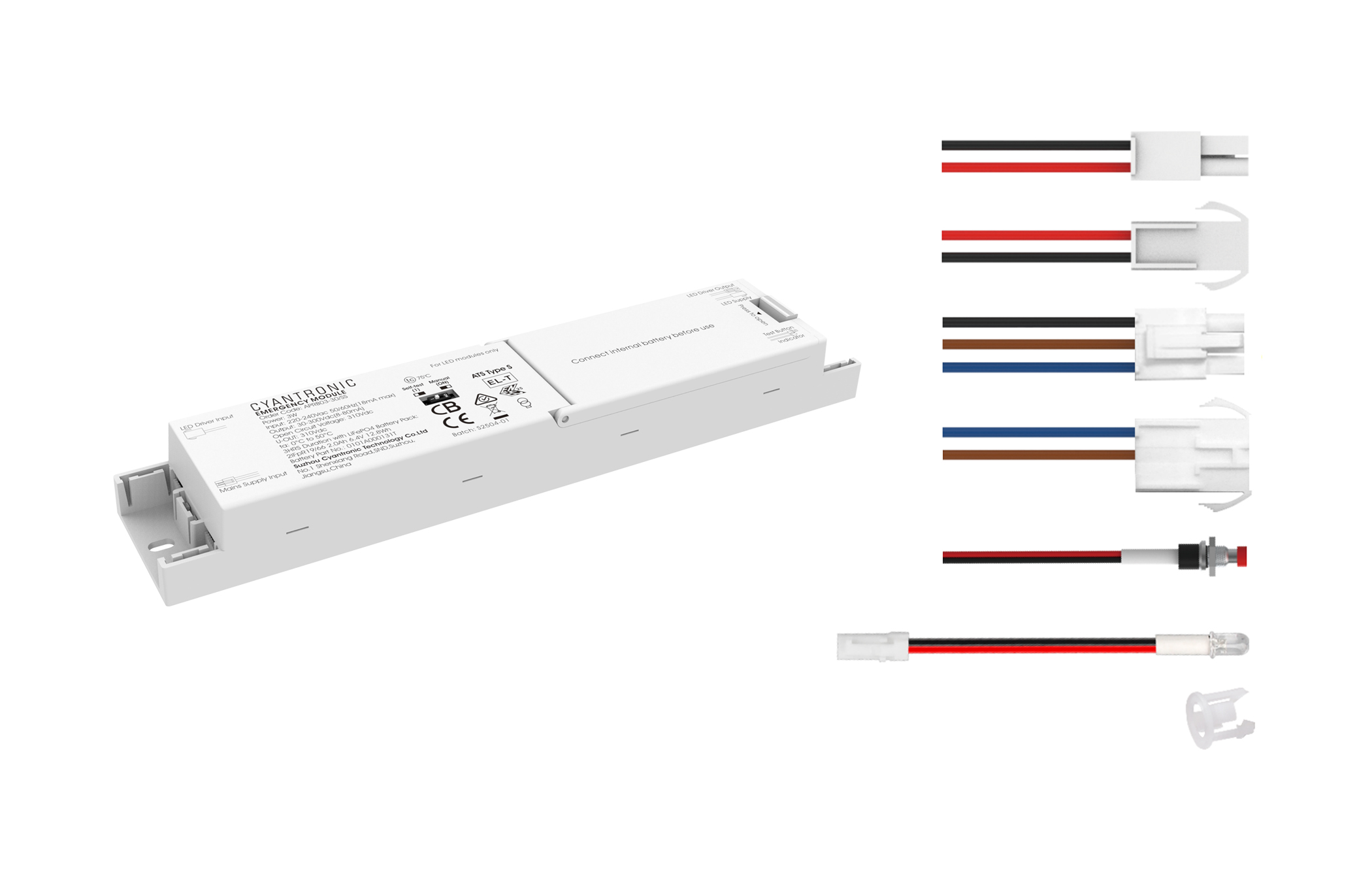 - Wired between driver and LED module via wiring leads with connector