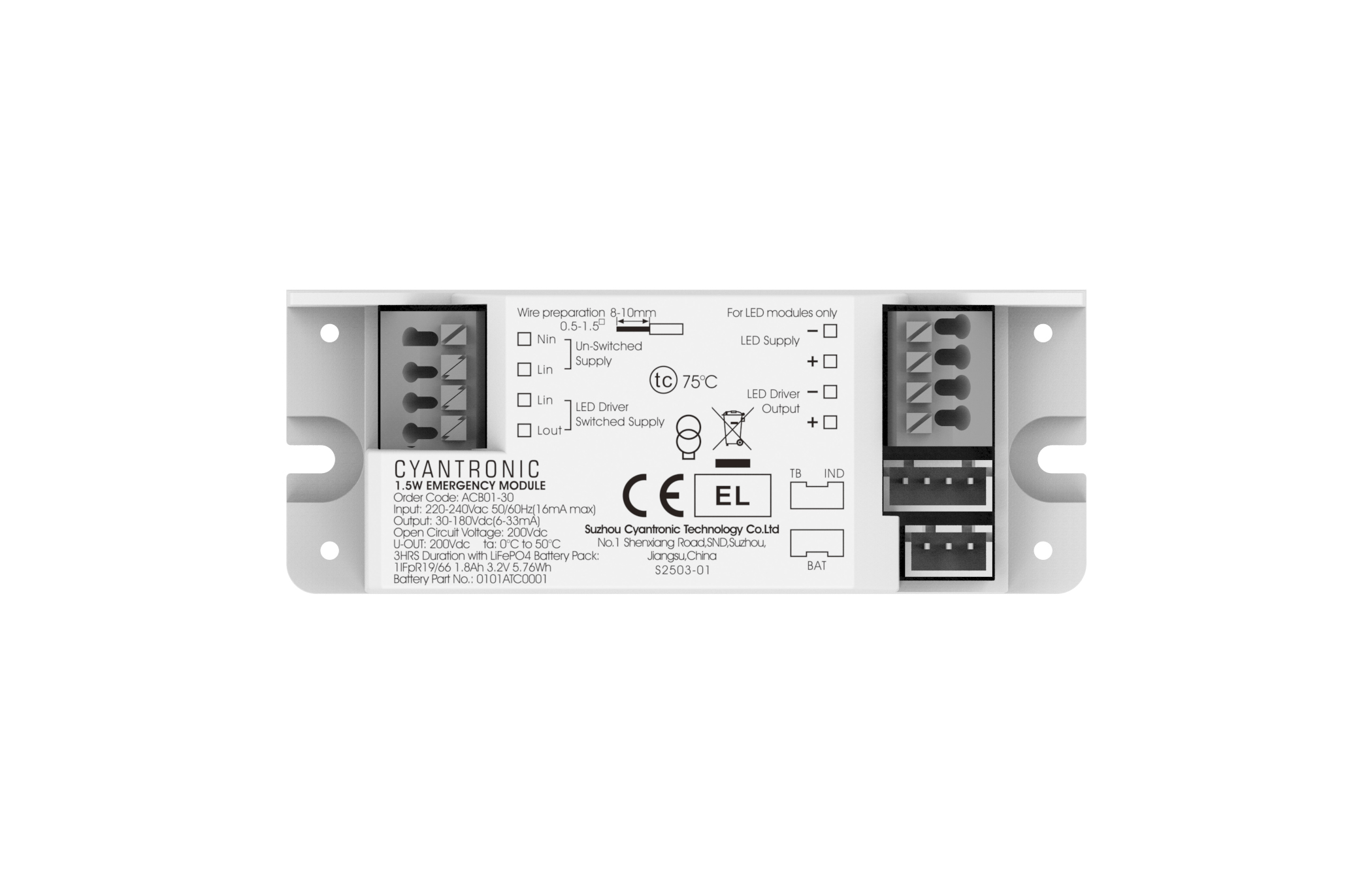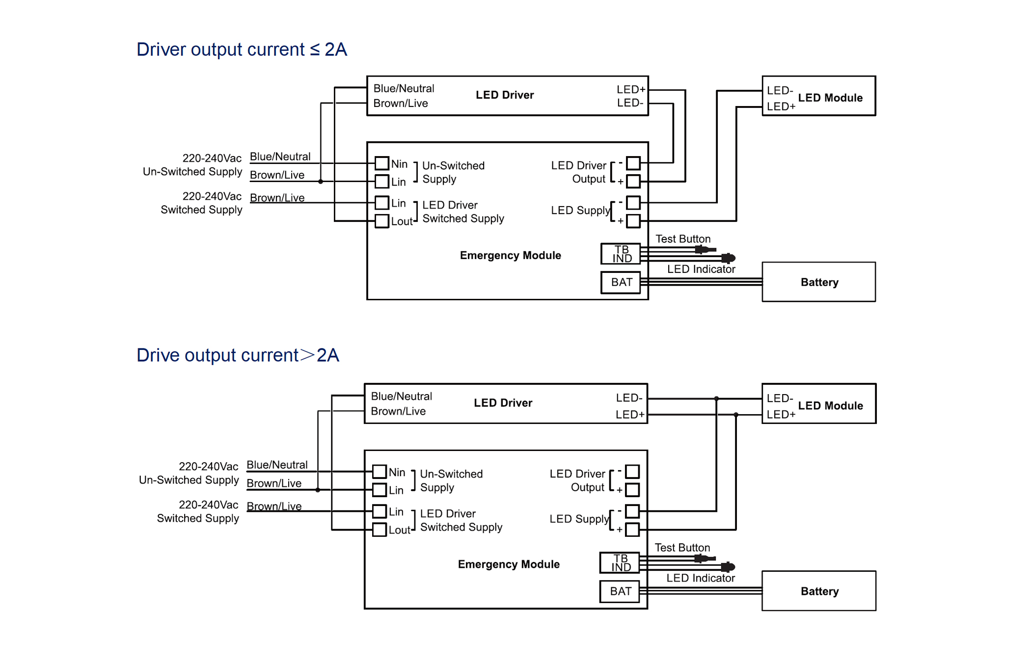 - Wired between driver and LED module via terminals